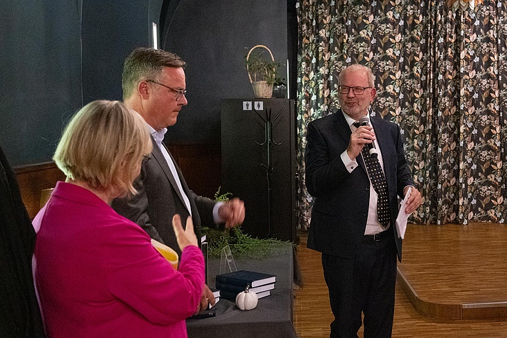 Die Laudatio auf sein wissenschaftliches Lebenswerk wurde von Frau Prof. Dr. Dr. h.c. Barbara Dauner-Lieb von der Universität zu Köln und Präsidentin des Verfassungsgerichts Nordrhein-Westfalen gehalten. Ebenso wurde unser herausragender Anwalt Prof. Dr. Werner Langen von Prof. Dr. Christian Bönker, Mitglied der Geschäftsführung von Kapellmann, gewürdigt.
