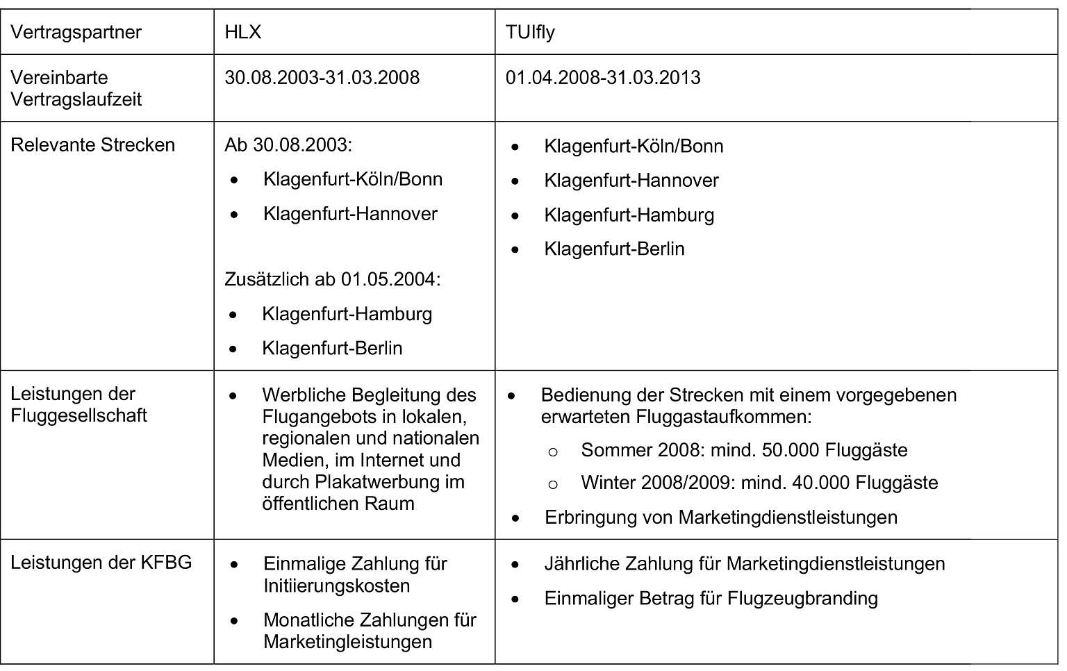 Betreiberin des Flughafens Klagenfurt ist die Kärntner Flughafen Betriebsgesellschaft mbH (im Folgenden: KFBG). Ihre 100%ige Tochtergesellschaft, die Destinations Management GmbH (im Folgenden: DMG), erbringt verschiedene Dienstleistungen für den Flughafen. DMG schloss mehrere Vereinbarungen, nach denen Fluggesellschaften für Marketingdienstleistungen erhebliche Beträge erhielten.