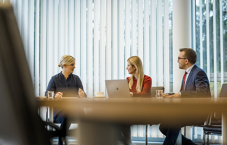 Take A52, exit Mönchengladbach-Nord: Turn off on Kaldenkirchener Straße towards Mönchengladbach and follow the road for 3.4 km (the name will change to Bismarckstraße). Turn right onto Steinmetzstraße (Albertuszentrum junction). Follow the road. Follow the slope and take a slight right onto Viersener Straße. Our building is on the right hand side. Parking is available in our own underground car park.